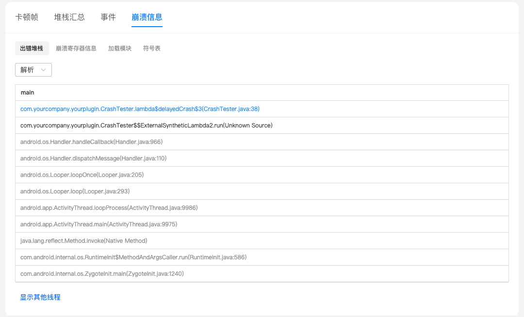 崩溃堆栈详情