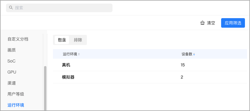 - 筛选控制灵活可控:支持在筛选器中自主选择“包含/排除”模拟器数据,对不支持模拟器游玩的项目,可一键隐藏无效数据,确保性能指标、异常发生率等统计结果与真实玩家设备场景高度一致。