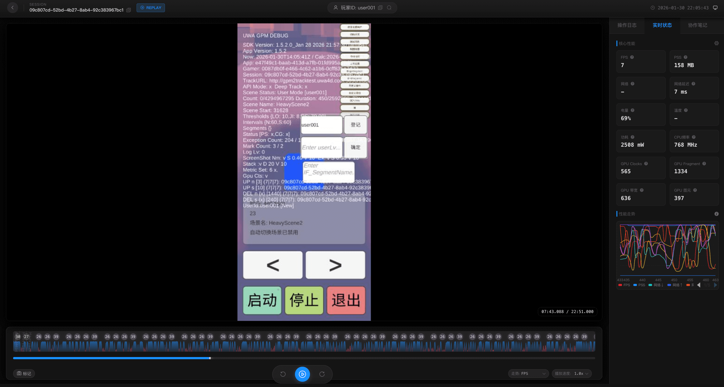 例如,统计玩家进入高负载场景时的卡顿率、内存占用、设备温度等指标,快速定位“玩家行为-性能短板”的对应关系。针对高频异常操作节点,还可通过“协作笔记”添加时间戳注释,方便团队成员快速对齐问题,让优化策略更贴合玩家实际体验。