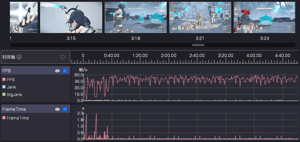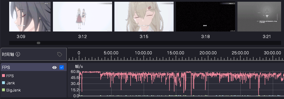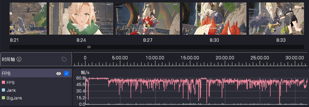 游戏初期帧率平稳,但后续出现明显波动,需重点分析掉帧原因。