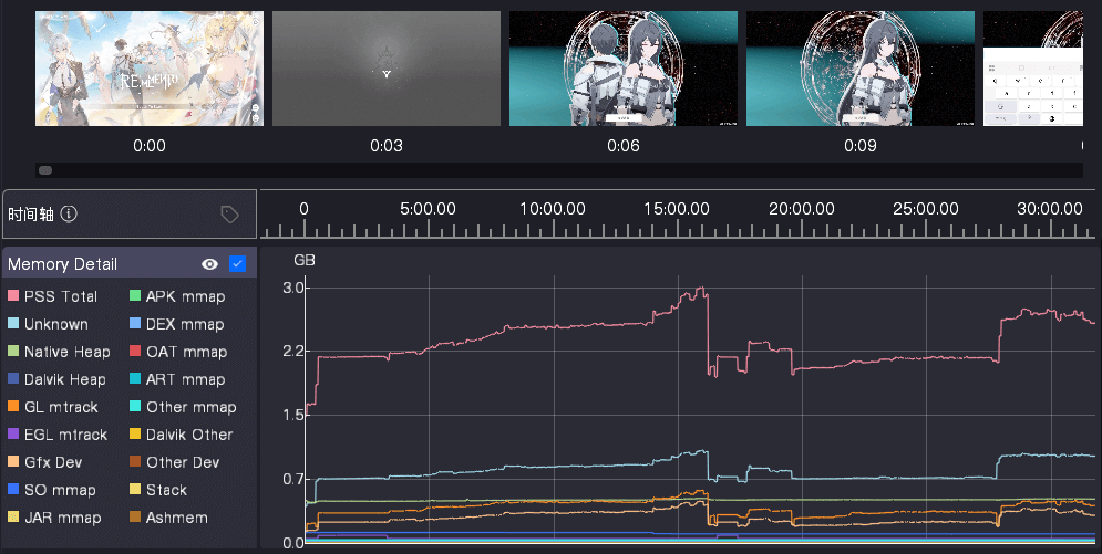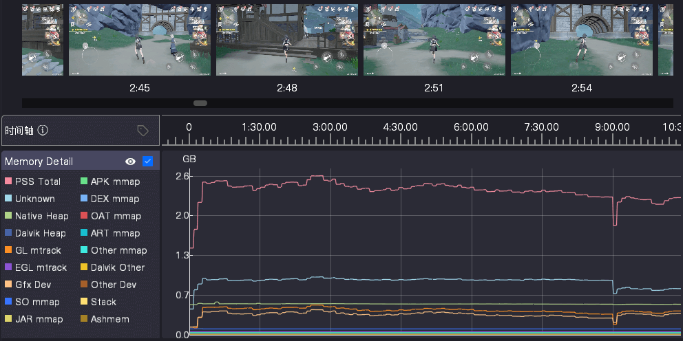 尽管玩家对内存不敏感,但过高的内存占用有引发闪退的风险。测试数据显示,进入游戏后PSS内存达到2.2GB,并在前半段持续上涨至3GB。虽然在场景切换后内存大幅下降,但仍需关注。