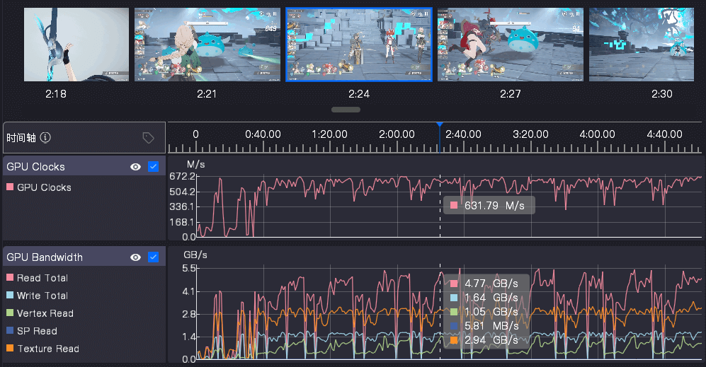 排除CPU后,我们转向GPU。Gears的GPU数据从多个角度证实了我们的猜测: