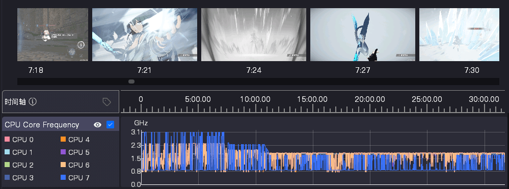 帧率下降常被归因于CPU发热降频。我们通过对比Gears采集的CPU频率与FPS曲线发现:虽然测试中CPU确实发生了降频,但降频的时间点与FPS开始波动的时间点并不吻合。