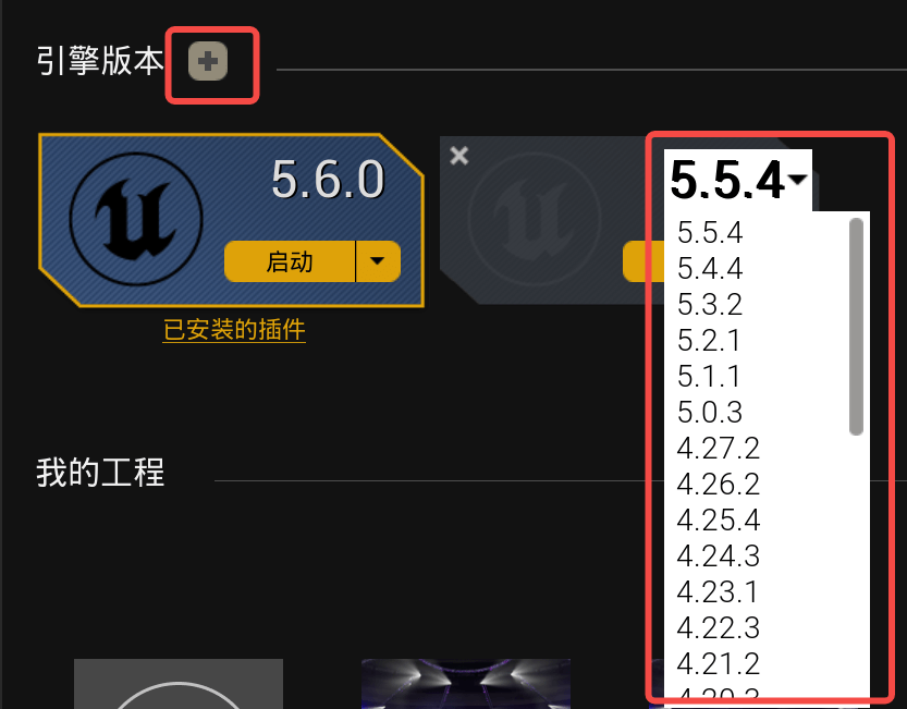 如果没有引擎或者想要下载引擎,点击左边的“+”号,可以选择要下载的引擎版本。