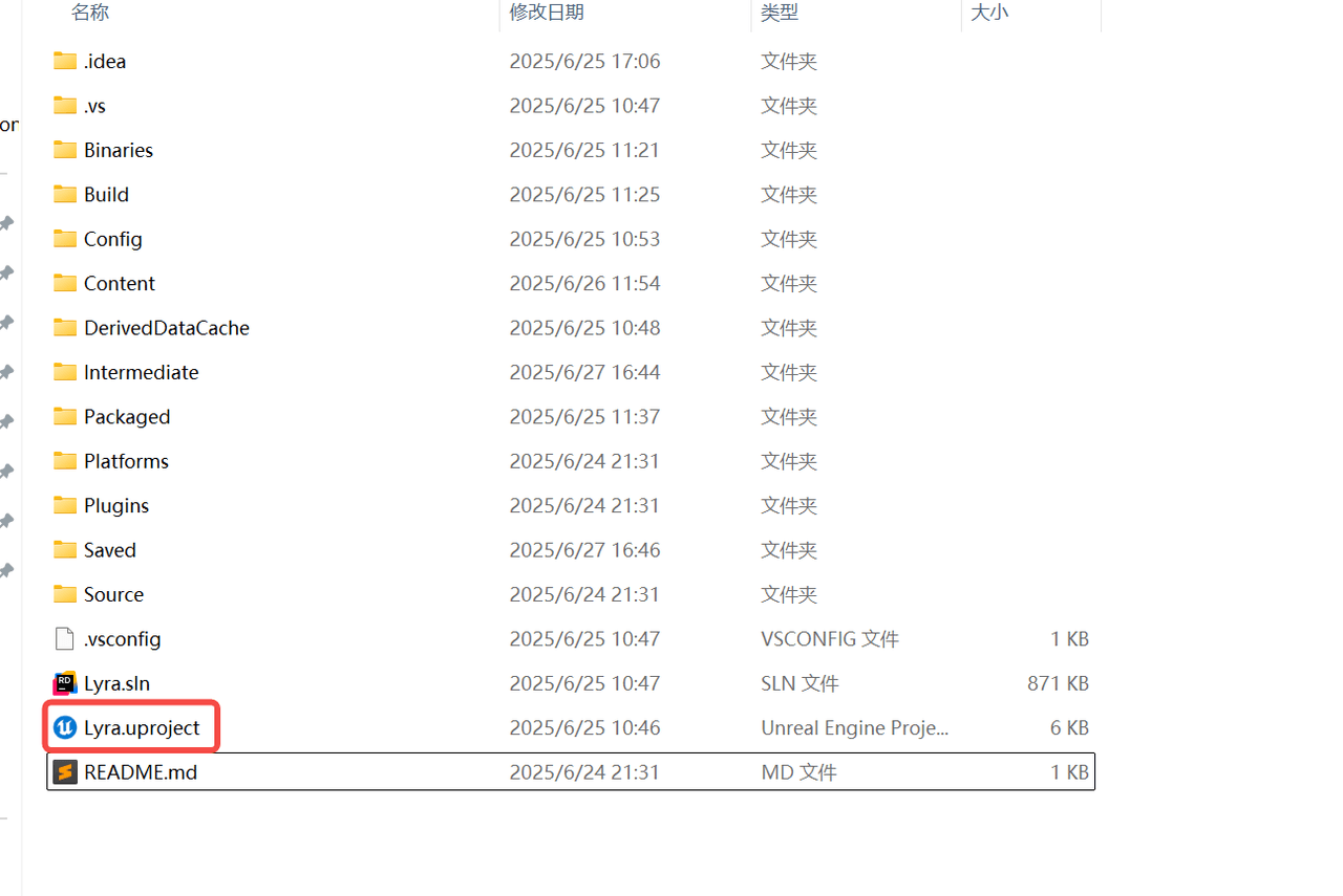 到这里Lyra的工程也就准备完成了。到设定的安装目录下就可以看到工程信息了。